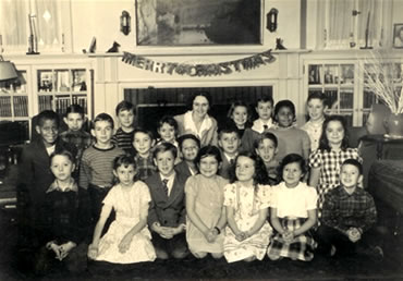 | You can see Gordon in this photo of Miss Samulson's Roslyn Heights School 3rd grade class at Neal Galione's home. Gordon is in the 2nd row, 3rd from the left between Michael Thompson and Dave Benson and behind Barbara Hagen. Click here to enlarge. |