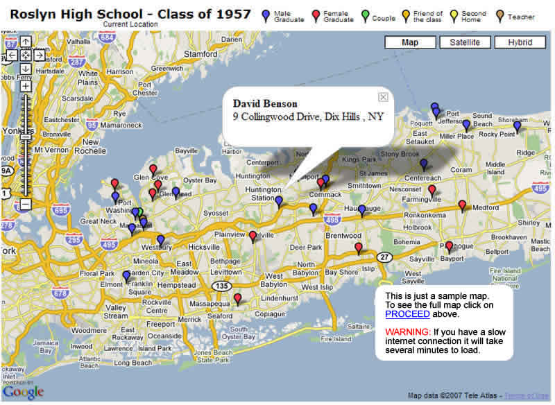 WARNING, the map will take a few minutes to load if you have a slow connection. (Once the map loads, you can click on the markers to pop up a name and address) PROCEED CANCEL